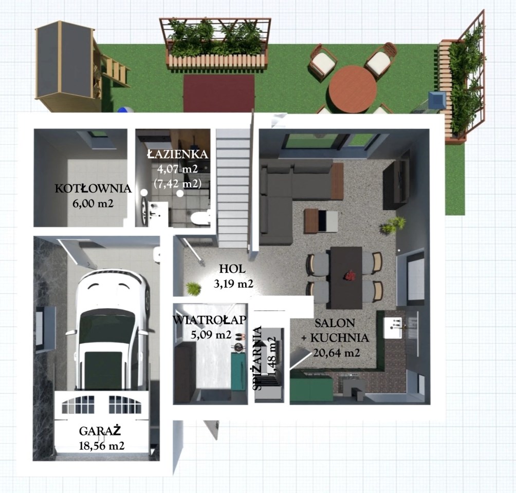 - garaż – 18,56 m²