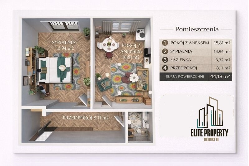 - pokój (sypialnia) – 13,94 m²