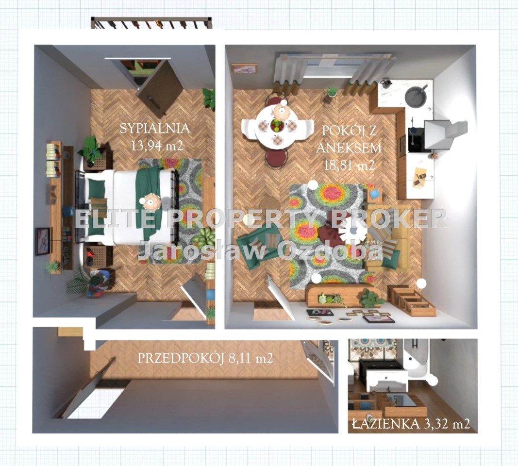 - pokój (sypialnia) – 13,94 m²