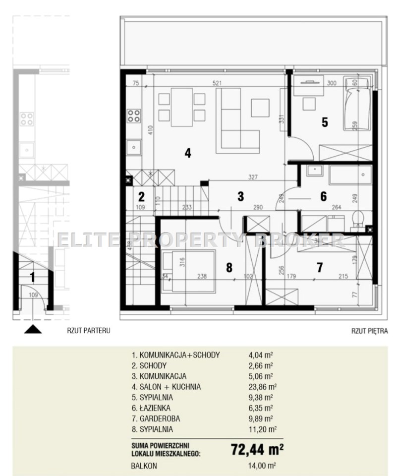 - balkon – 14,00 m²