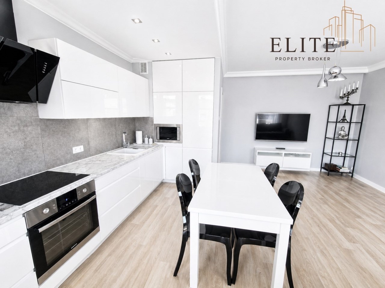 | Wyposażenie kuchni | meble kuchenne na wymiar, mikrofalówka, kuchenka, okap kuchenny, naczynia, piekarnik elektryczny, garnki, płyta indukcyjna, krzesła, stała zabudowa, stół, wyposażenie drobne, zlewozmywak z baterią, zmywarka |