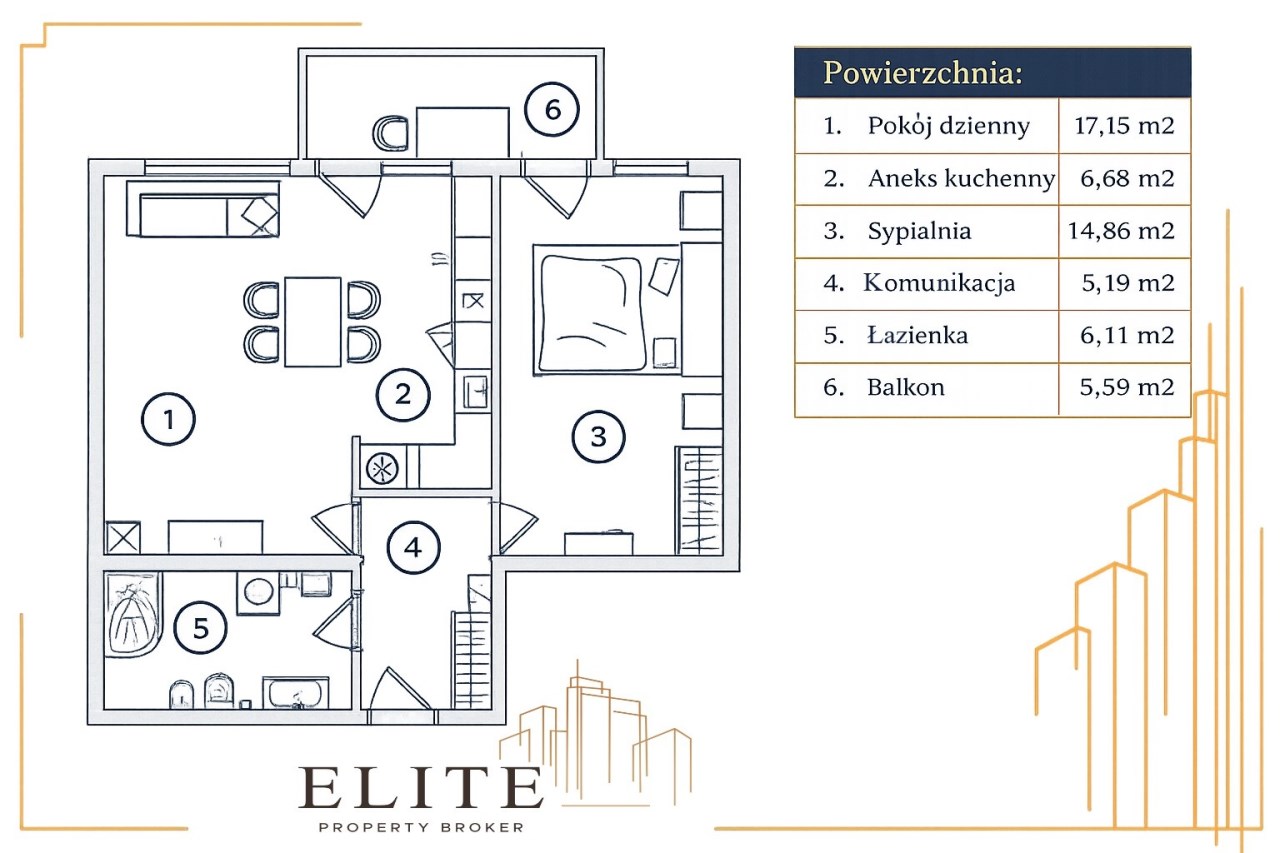 | Liczba sypialni | 1 |