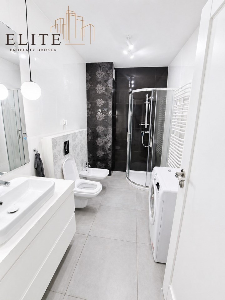 | Wyposażenie łazienki | WC, umywalka, prysznic, pralka, lustro, kabina prysznicowa |