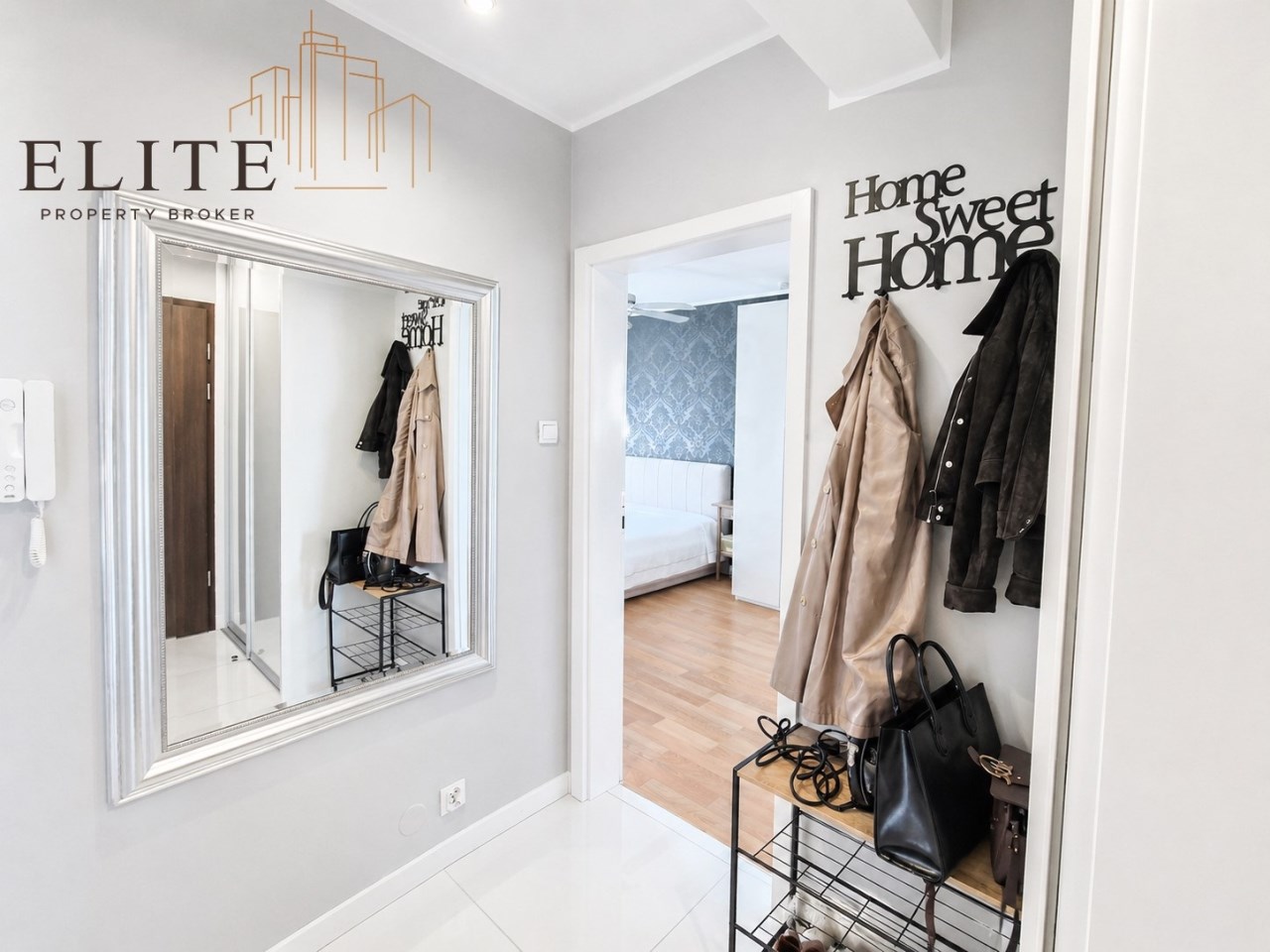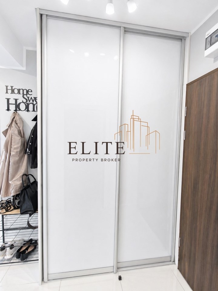 Mieszkanie jest jednopoziomowe, jednostronne (okna i balkon wychodzą na stronę wschodnią), o bardzo dobrze zaplanowanym rozkładzie pomieszczeń, który zapewnia wyraźny podział na strefę dzienną i prywatną.