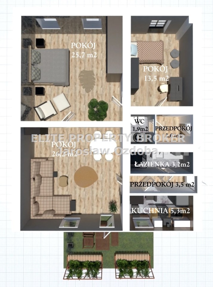 • OGRÓD - 15 m² (strona północna)