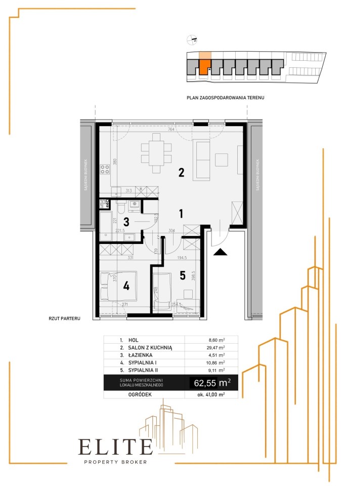 MIESZKANIE 3-POKOJOWE | 62,55 m² | OGRÓD 41 m² | KRAKÓW – BRONOWICE