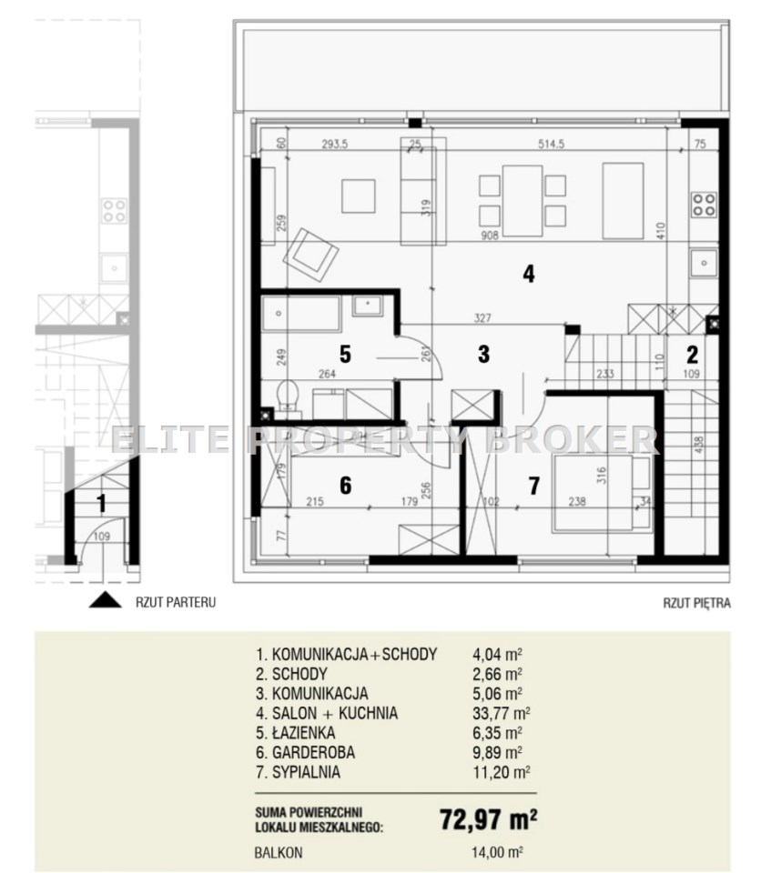 - balkon – 14,00 m²